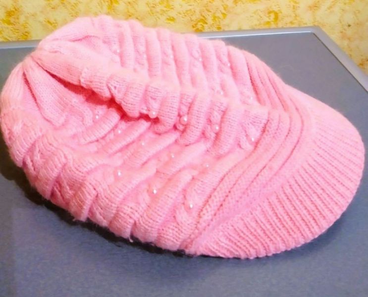 - Теплая и мягкая женская двухслойная зимняя шапка. Модель с козырьком, без подкладки и украшенная жемчугом. Идеальна для холодных и зимних дней!